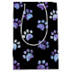 Black Blue Textured Paw Print Pattern Medium Gift Bag