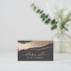 Make a bold and sophisticated statement with this stunning business card. The dramatic black background is adorned with a shimmering blush and gold wave pattern, creating a luxurious and eye-catching design. Your name and services are elegantly displayed in a delicate blush pink script, ensuring a lasting impression on potential clients. Perfect for hair stylists, makeup artists, and other beauty professionals who want to showcase their style and expertise.