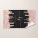 Black Blush Rose Gold Glitter Drips 2 Monogram Hand Towel
