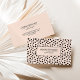 A modern, girly business card design featuring a pattern of black hand-drawn dots in various sizes scattered on a blush background. Personalise it with your name and title in black on a black-bordered rectangle. On the reverse side, add your name, title, and contact details in black on a blush background.