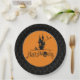 Black Boarder Happy Halloween Haunted House Paper Plate