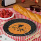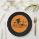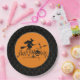 Black Boarder Happy Halloween Witch And Bats Paper Plate