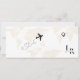 An elegant monogrammed boarding pass wedding ticket, a portrait of the engaged couple, a plane with a loop trail, and an easy customisable save the date template. Please remember to edit the text on the back of the monogram.