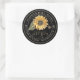 Black Label with Vintage Sunflower illustration and Realistic Bee features a double white border circling your Apiary Name and Location. Apiary name is displayed in curved text across the top and the beekeeper's name, city and town are written in curved text on the lower half of the label. There is a delicate white and taupe border near the outer perimeter of the label. The words “Body Balm" are written in a decorative font.