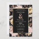 Black Boho Blooms & Bird Wedding Invitation features large pink white and beige blooms and a bird on the & sign. This is the perfect wedding invitation for any season because of its elegance and style. Fully customisable and match RSVP card available.