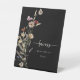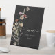 Black Boho Favours Sign. Guide guests to their take-home treats with bold elegance using our Favours Tabletop Sign, designed in a dramatic black background and accented with soft ivory script and text. A moody botanical motif featuring delicate watercolor florals in muted cream, soft taupe, faded sage, and dusty mauve adds a romantic, slightly vintage touch to this modern display piece. Perfect for tying your décor together, this sign enhances your favourite table with beauty and function. Elevate the small moments—display this stunning piece to complete your moody celebration with polished flair