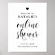 Simple and elegant bridal shower welcome sign featuring bold calligraphy, classic typography and a heart accent. Personalise by adding a name, date and other details. This simple black and white online shower welcome sign are perfect for any shower theme and season.