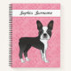 Black Boston Terrier Dog On Pink Hearts And Text Notebook