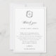 Botanical Monogram Crest in black, Wedding reception thank you table card. Template provides multiple lines for your custom thank you message.