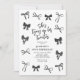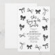 Make your birthday event unforgettable with our Coquette 30th birthday invitations. These invites are beautifully designed with stylish black watercolor bows and an elegant text template including the title "she's tying up her twenties".