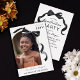 Pretty graduation invitation and announcement in one personalised with an arch-shaped photo adorned with a pretty ribbon with a bow in black and silver foil. Double sided graduation invitation with a white background and pretty black bows. Girly 2 in 1 graduation announcement and invitation personalised with photo and the graduate's name in a beautiful silver foil script and her photo decorated with a bow in black and silver foil.