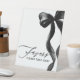 Part of the elegant black bow invitation suite, this modern bridal shower pedestal sign adds a stylish, coordinated touch to your celebration. Featuring a graceful black watercolor ribbon along the edge, it nods playfully to the bride-to-be “tying the knot” while keeping the look refined and chic.