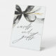 This black ribbon bow frame pedestal sign is perfect for guiding guests to the cards and gifts table. Whimsical yet modern, it adds a chic touch that complements your “She’s Tying the Knot” bridal shower theme beautifully.