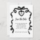 These anniversary party Save the date cards have a black bow and ribbon border on a white background. You can personalise with your anniversary year/number, name and date.