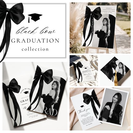 Black Bow Photo Graduation Invitation