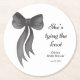 Black Bow She's Tying the Knot Bridal Shower Round Paper Coaster