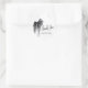 The sticker is made on wonderful paper and had no problem sticking to the bag that I purchased to put it on. I wanted to find a design that would be cute for the bride and groom and this one fit the bill as it has cute "bees" buzzing around and the wedding was taking place in a town called "Bee Cave". The packaging was great and protected the stickers. The website is easy to navigate and there are so many color choices. I had no problem finding a color that the bride was using on everything else selected. The design was adorable and there were many to choose from. You can make the figure as larger or smaller and you can place the photo and writting whereever you want to in the sticker. The printing is fabulous..better than expected.