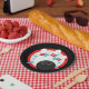 Black, Teal Blue and Red Bowling Pins Paper Plates