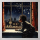 Black Boy Gazing at Christmas Eve City Lights Poster