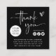 These stylish and trendy black small business branding and packing thank you cards feature modern white script, on a dark black background. There are social media icons, room for your logo, and a spot for a QR code on the back. You can adapt the message to offer a discount to your customers. A look that is both professional and stylish, and perfect for any type of occupation, such as content creator, makeup artist, hair salon stylist, and more.