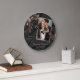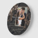 Change the photo and the text to personalise this black and mocha brown abstract floral photo template wedding, engagement, or anniversary wall clock. An elegant floral design.