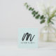 A modern brush script initial calling card with rustic a brush script typography name signature. Unique and original style letterform on blue background. Eye catching minimal typographic design style.