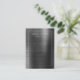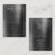 A black faux brushed metal image framed by a thin white rectangle provides the background for customizable white sans serif and italic text, adjustable earring guides, and space on the reverse for your white logo (or delete if you wish).