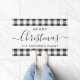 Custom-designed doormat featuring "Merry Christmas" modern typography design with your family name on festive black and white buffalo check pattern.