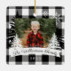 Black Buffalo Plaid Rustic Pine Tree Family Photo Ceramic Ornament