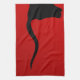 Black bull on red tea towel