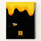A chic black background decorated with golden dripping honey. The text: Bee Happy with a golden hand lettered style script with swashes. Personalise and add your name and a title, year