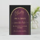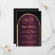 A Save the Date card for a 60th birthday party. A black and burgundy background, decorated with a faux gold arch. Personalise and add a date and your name. The text: Sixty and Save the Date is written with a large trendy hand lettered style script.