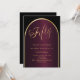 An elegant 50th birthday invitation. A black and burgundy background with a golden arch on the front.