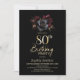 Black Burgundy Grey Floral 80th Birthday Party Invitation