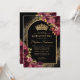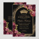 Black Burgundy Red Gold Glitter Floral Quinceanera Invitation