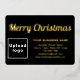 Merry Christmas! One of the most celebrated holidays of the year. It is also one of the best seasons to advertise your business or to promote your brand name to customers or clients. Customisable foil holiday card that you can put your business brand, your products or services and with Christmas greeting. You can put up to 3 products. Customise it and use it as marketing material to advertise your brand name and to promote your business products or services. Foil holiday card that you can use to build brand name awareness. You can use it in December or Christmas in July. Design colours and shape are gold foil and white texts on black background and landscape format rectangle shape. To customise this foil holiday card, upload your business logo, images of your products or services, type your business name, names of your products or services, address, phone number, e-mail and website or your business social media page. Merry Christmas! Wishing you more sales this holiday.