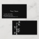 Plain black business card with bamboo patterned on the back in white silhouette and name and contact details on the front. Simple yet elegent.