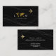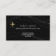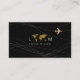 An elegant dark business-card for a travel agent... with name, a faux gold (ochre colour) map of world and an aeroplane, with some thin lines along the black background.