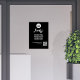 Promote your business with this simple black and white business sign designed for opening hours and customer engagement. This minimalist, contemporary design allows you to add your logo for a personalised touch. Featuring a convenient QR code, it makes connecting easy while enhancing your promotional and marketing branding. Perfect for storefronts, counters, or events, this versatile sign blends functionality and style to keep your brand professional and memorable.