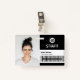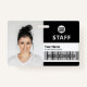Easily personalise this Custom Employee Name Badge with Photo, Scan Bar Code and business company logo, featuring persons name, occupation, optional identity bar code, with metal clip included. A branded badge useful to identify staff, visitors or guests. A simple business design left-aligned in black and white colours fully customisable in front and back sizes, sans-serif basic and modern fonts and a professional and clear look. An useful tool for corporate events, reunions, renews and celebrations. Create more corporate photo badge identification card in different colours for any category you need to identify: staff, visitors or guests. Avaiable with or without lanyard, metal clip or with retractable. No minimum order.