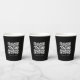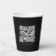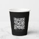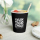 A modern minimalist personalised business paper cup business QR Code and text. Personalise with your QR Code and text to create your own design. Customise even further with a custom paper cup background colour.
