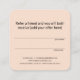 The Feminine Black Butterfly & Blush Pink Beauty Salon Referral Card features an elegant design with a soft blush pink background and a delicate black butterfly accent. This stylish card encourages client referrals with a chic, feminine touch, making it perfect for beauty salons. Its sophisticated design reflects your salon's branding while offering a professional way for clients to share their positive experiences with others.