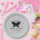 Black Butterfly paper plate featuring an elegant black butterfly with spread wings and a pair of curly antennae, all on a pale grey background and within a round white border, with custom text. © Morning 6