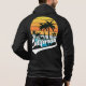 Black California fleece zip hoodie with a design that features a retro sunset and palm trees on the front and back. This design also has California in a handwritten font with a swash tail glyph for that stylish retro look. This hoodie is just for you if you are from California or to get as a gift or souvenir for someone. You can edit to delete the design from the front or back of the hoodie if you like.