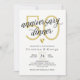 Elegant wedding anniversary dinner invitation in black and white with gold details.