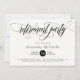 Elegant and minimalist Retirement party invitation with black text against a white background. Retirement Party is written in a gorgeous calligraphy script, rich with swirls.