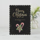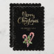 Black Candy Cane Holly Berries Christmas Holiday Card