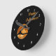 Wall Clock, 25.4 cm Round Black Wooden Frame