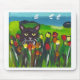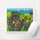Black cat amongst tulips mouse pad