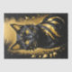 A simple, elegant, and refined design featuring a black cat set against a luxurious gold background. The cat's sleek silhouette is outlined in bold black, with its eyes subtly highlighted in gold, creating an air of mystery and sophistication. The background is a rich, deep gold, providing a striking contrast to the cat's dark figure while maintaining a sense of balance and harmony. The design is minimalist yet powerful, with black and gold as the only colours, evoking a sense of timeless elegance and understated luxury.